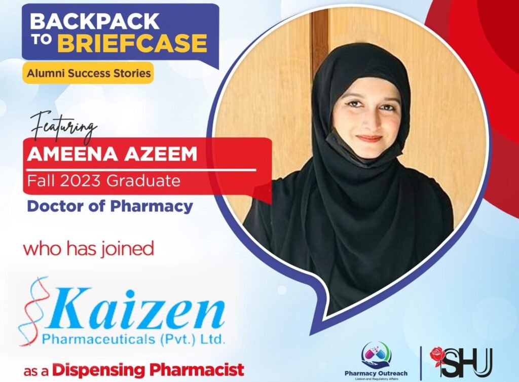 The Pharmacy Outreach, Liaison and Regulatory Affairs Office at Salim Habib University is proud to announce that Ameena Azeem, a