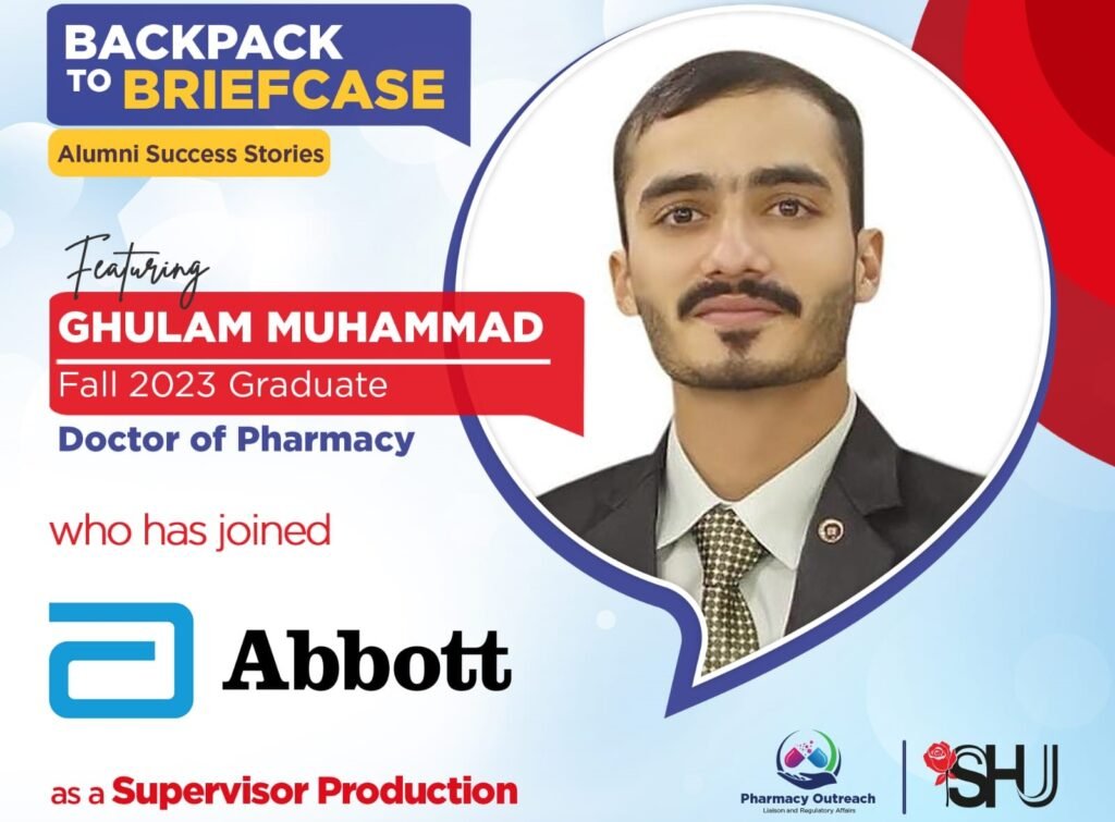 The Pharmacy Outreach, Liaison and Regulatory Affairs Office at Salim Habib University is proud to announce that Ghulam Muhammad, a