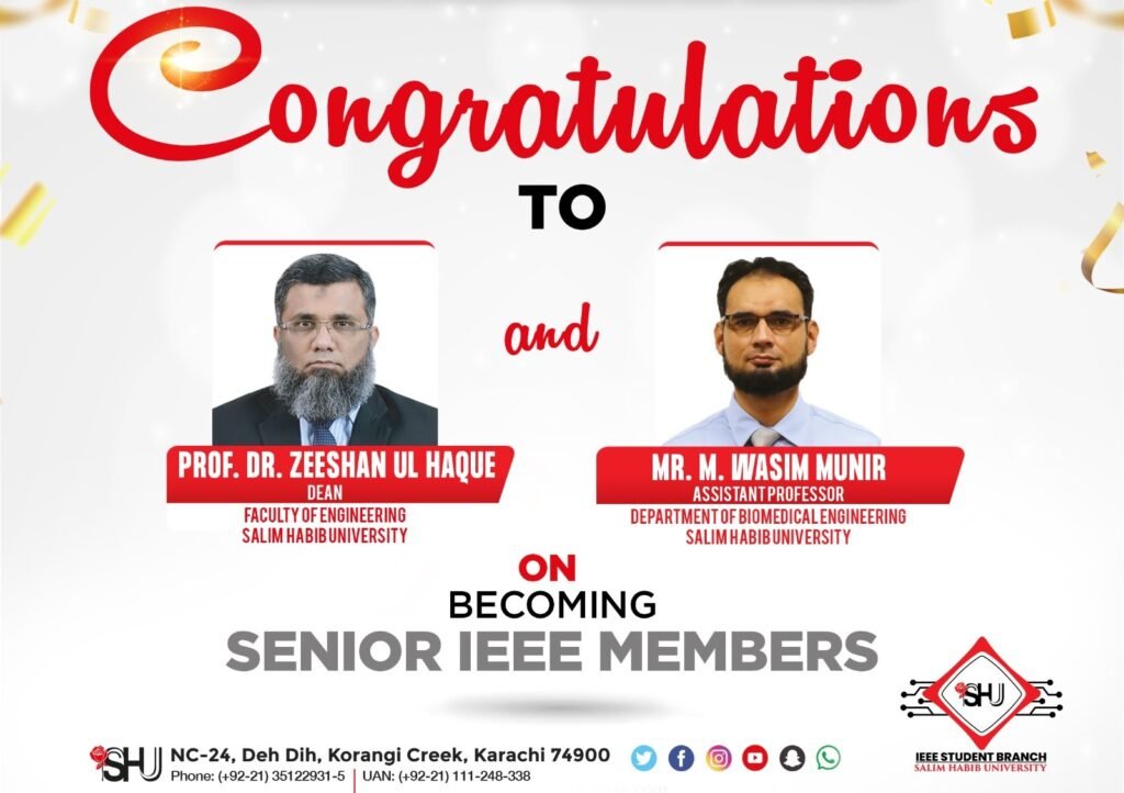 We offer our congratulations to Prof. Dr. Zeeshan Ul Haque, Dean, Faculty of Engineering, Salim Habib University, and Mr. M.