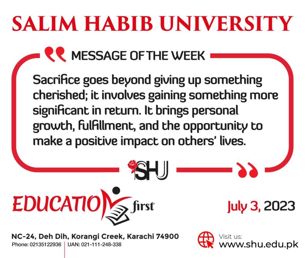 On behalf of the entire Salim Habib University community, we offer our deepest condolences on the sad demise of the