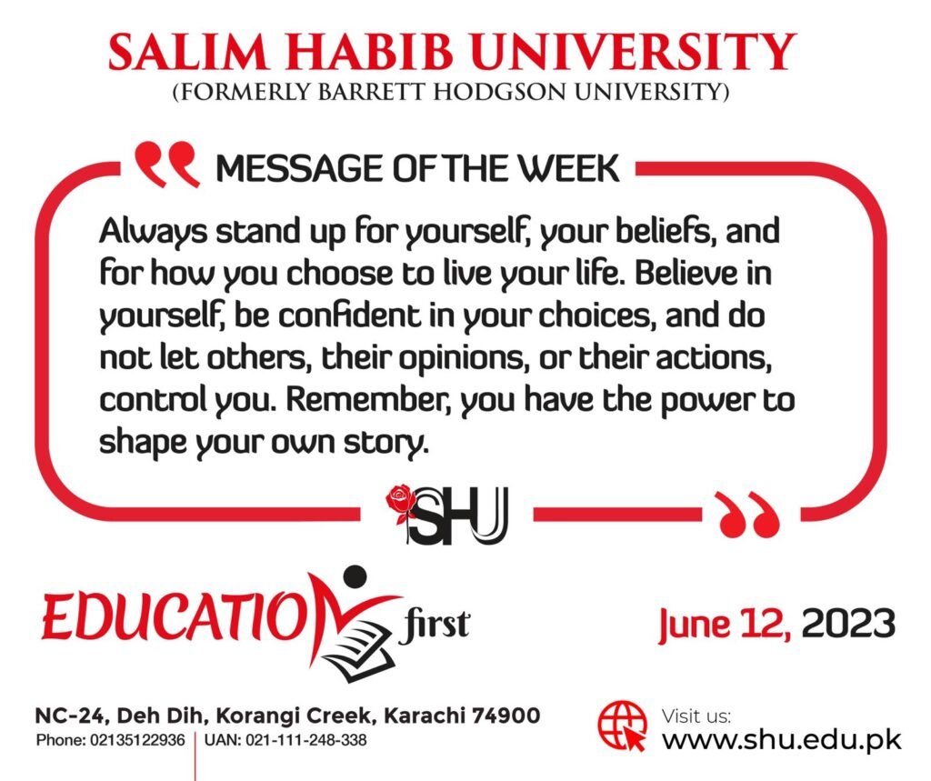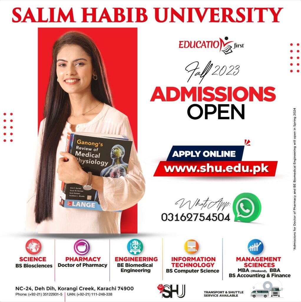 Salim Habib University's Admissions for Fall 2023 are open!With world-class educational facilities and programs based on innovatively designed curricula, we