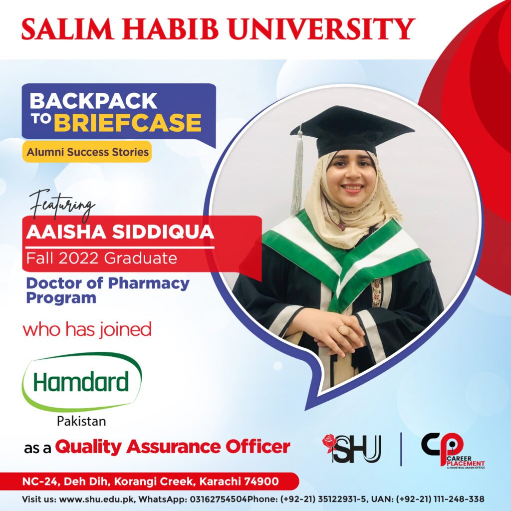 In today's installment of the Salim Habib University Career Placement & Industrial Liaison Office's Backpack to Briefcase Series of Alumni