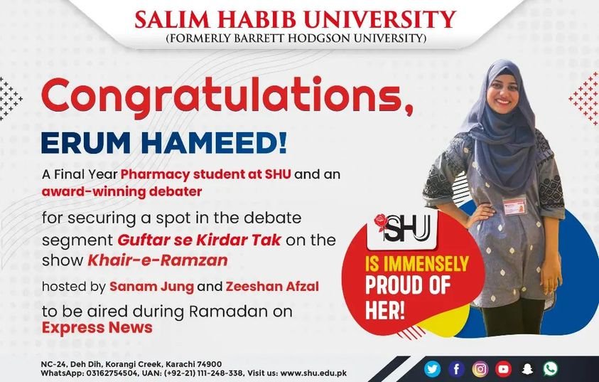 Erum Hameed, Final Year Pharmacy student, secures spot on the Express News Daily Ramadan Special Show Khair-e-Ramzan