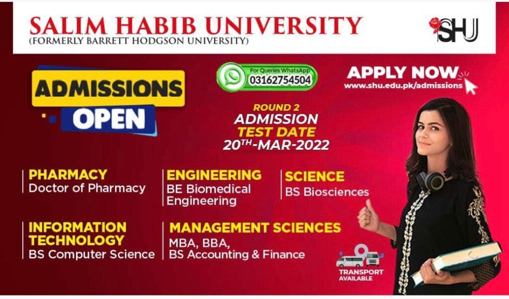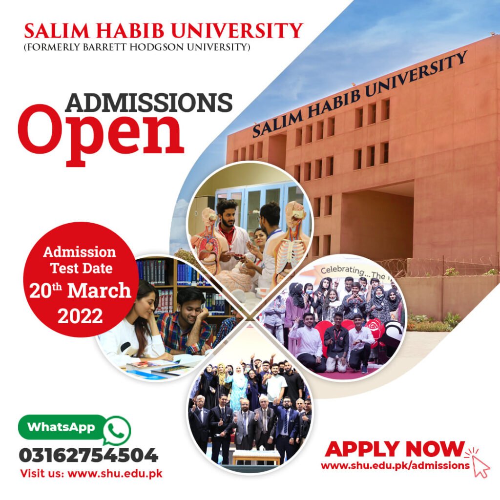 Salim Habib University’s spring 2022 Admissions are Open!The 2nd round of aptitude test will be held on 20th March 2022.Apply