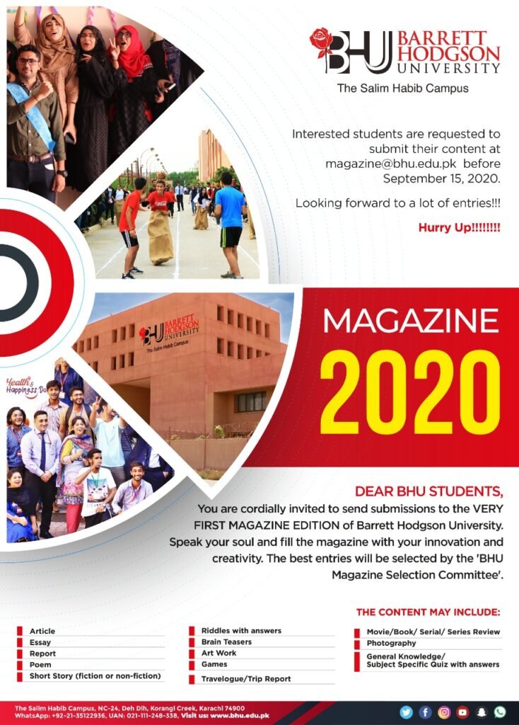 Attention All BHU Students! Barrett Hodgson University is looking for talented students who are eager to display their creativity and talent…Instructions:The