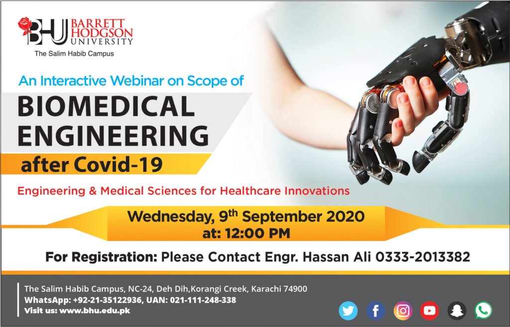 Barrett Hodgson University has arranged an Informative and Interactive Webinar on the Scope of Biomedical Engineering after COVID-19, on Wednesday