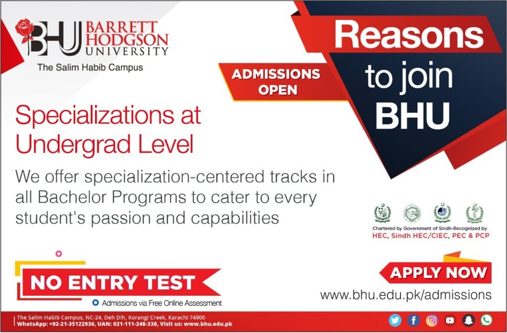 Secure Your FUTUREReason to Join Barrett Hodgson UniversityWe Offer Specializations at Undergrad Level to cater to our students' passions and